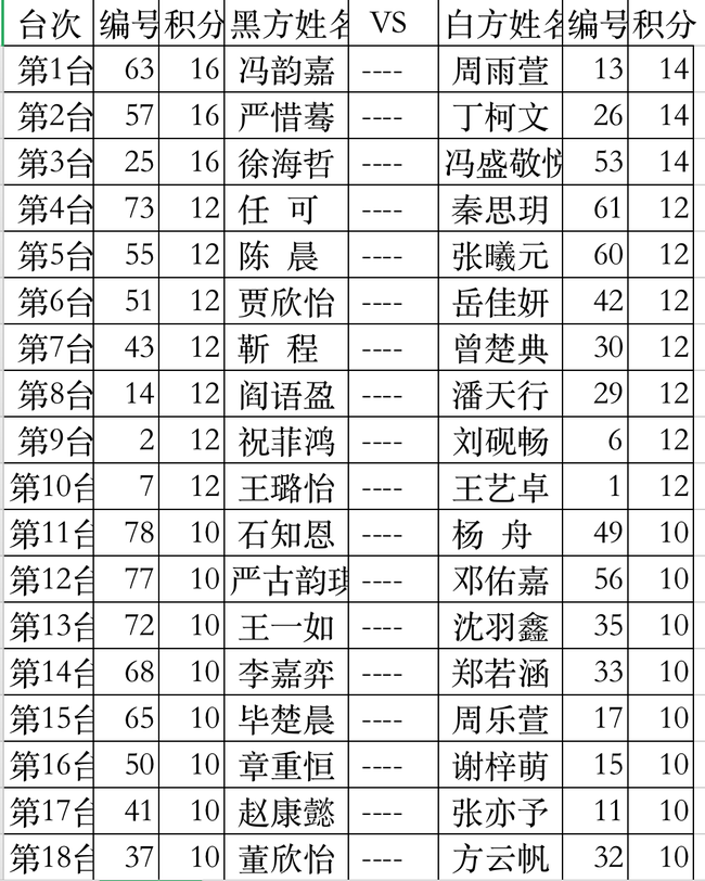 2020年全国围棋定段赛于10月9日-18日在江苏无锡进行。15日上午进行青少年组女子组第10轮的比赛,以下为对阵详情: