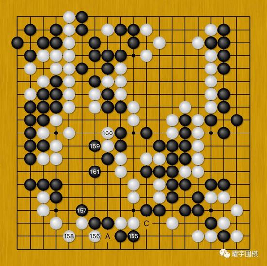 黑153、155扳了爬,是局部好手,其意在一箭双雕。