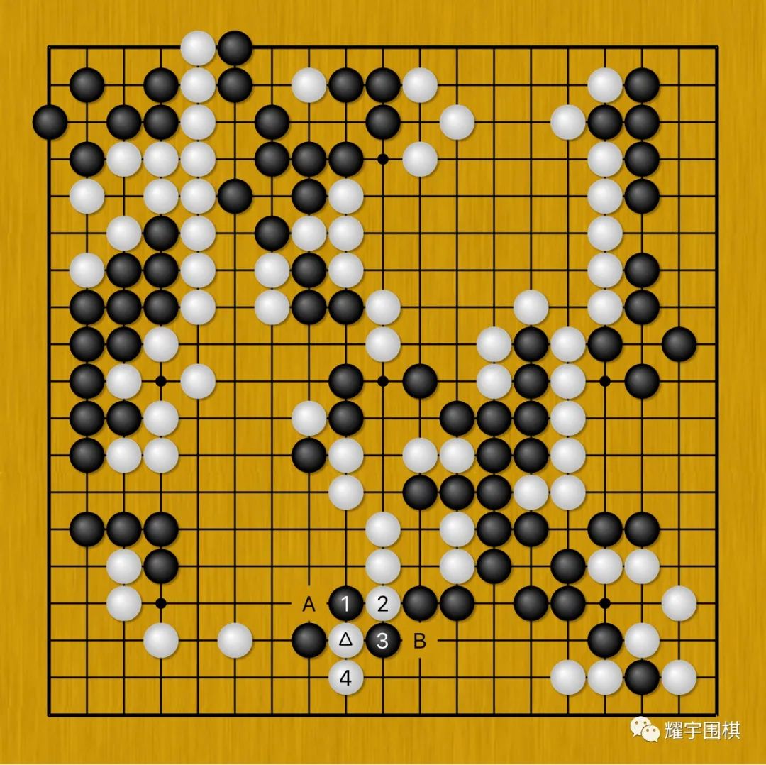 所以这道理怎么讲,白棋都应该赶紧A位长一手再说。