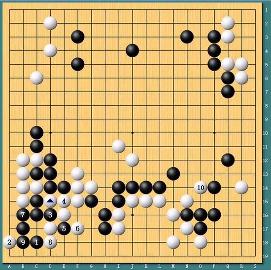 图4:以下杀气的手法令人眼花缭乱,虽然局部白棋气不够,但黑棋在延气期间也不得不撞厚了白棋,白棋转手冲击下边黑棋,也充分可战。更关键的是,左边白棋数子,柯洁留有玄机。