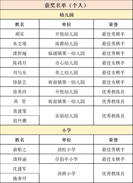 让我们以最热烈的掌声,向所有获奖的小棋手、教练员、学校(幼儿园)表示祝贺 !