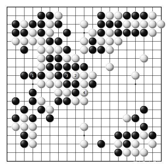 而当黑棋交换到135的贴之后,白1以下再试图封住黑棋,则2子刚好被征吃。