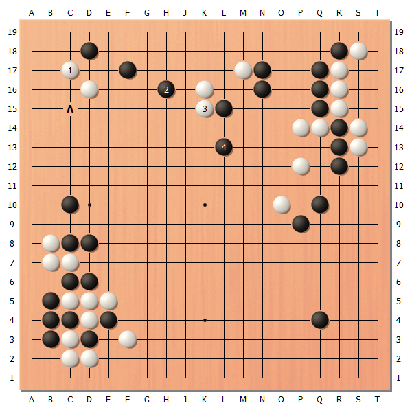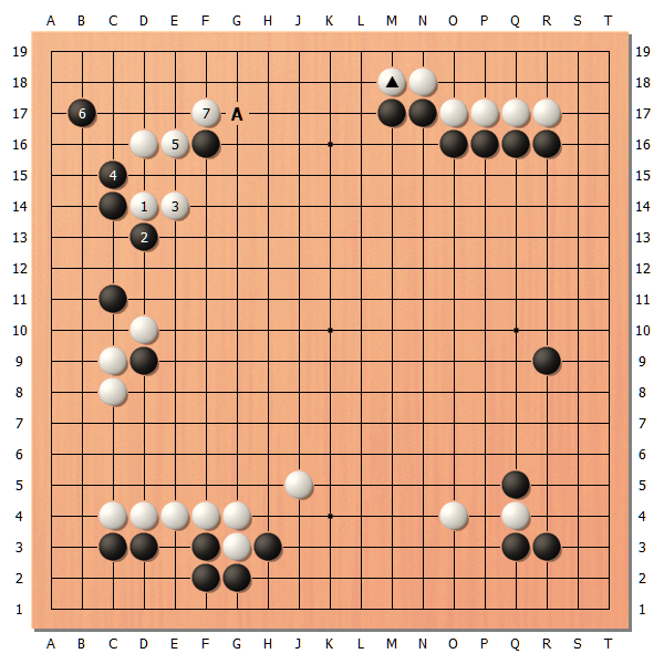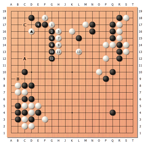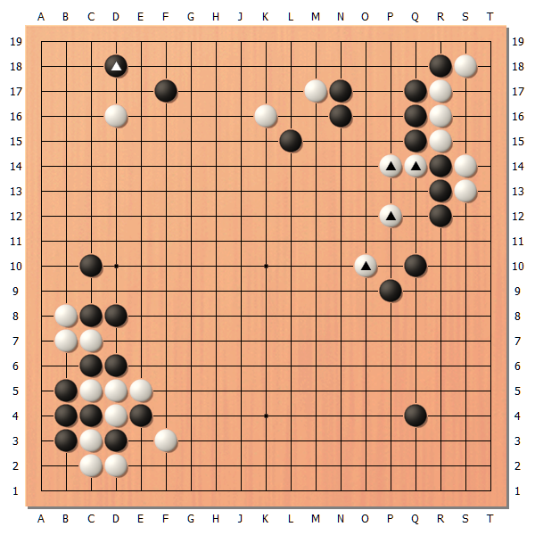 重要的是中央右侧的白△,如果这块棋受攻的话,白棋的形势就有可能落后了。
