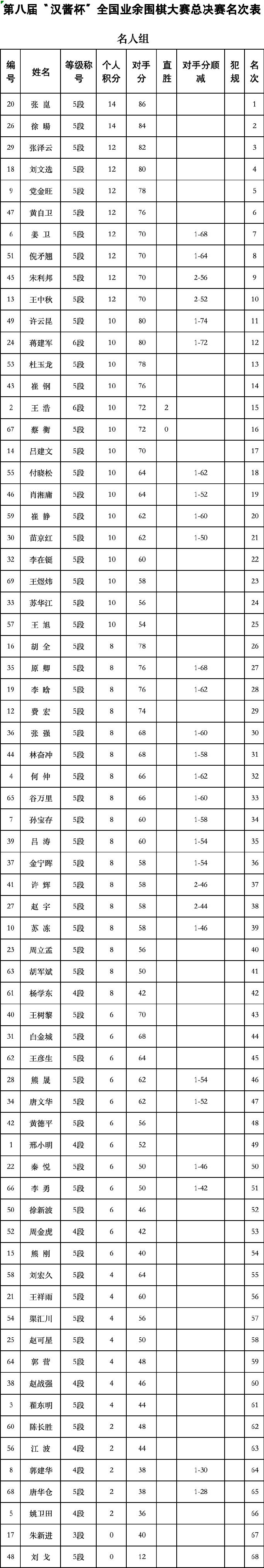 11月3日,第八届“汉酱杯”全国业余围棋大赛总决赛于河南省郑州市高新皇冠假日酒店闭幕。经过三天半的激烈争夺,唐崇哲、潘文君、陈镱夫获得名手组前三名;张崑、徐暘、张泽云获得名人组前三名;杨天波、孟繁雄、周隽尧获得名师组前三名。