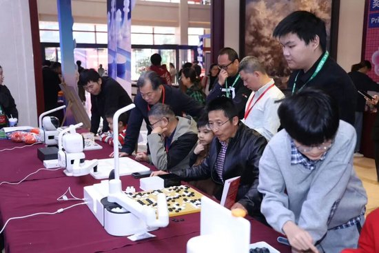 在智博会智能围棋机器人挑战区,一个熟悉的身影吸引了一圈圈围观者——小明围棋机器人正以沉稳的“手臂”落子布阵,与挑战者展开一场场无声的智力较量。