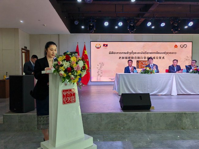 老挝当地时间上午9时30分,成立仪式正式启幕。老挝奥委会、教育与体育部相关官员,来自中国、老挝、马来西亚、泰国、越南、东帝汶、新加坡、印度尼西亚八国的棋手代表,以及中老两国媒体记者、各界友好人士共计八十余人,齐聚老挝中国文化中心,共同见证这一重要时刻,现场氛围庄重而热烈。